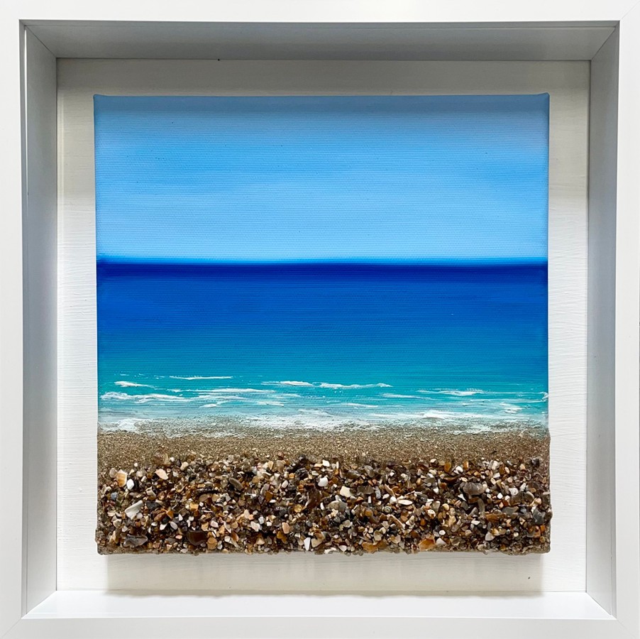 "Days by the Sea" is a stunning painting that brings to mind memories of idyllic summer days spent soaking up the sun and basking in the ocean breeze.