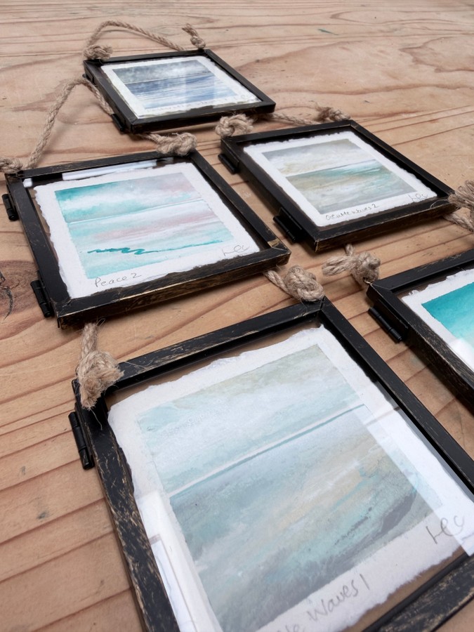 Each coastal miniature is an original painting, designed to bring a small, quiet moment of the sea into everyday spaces.