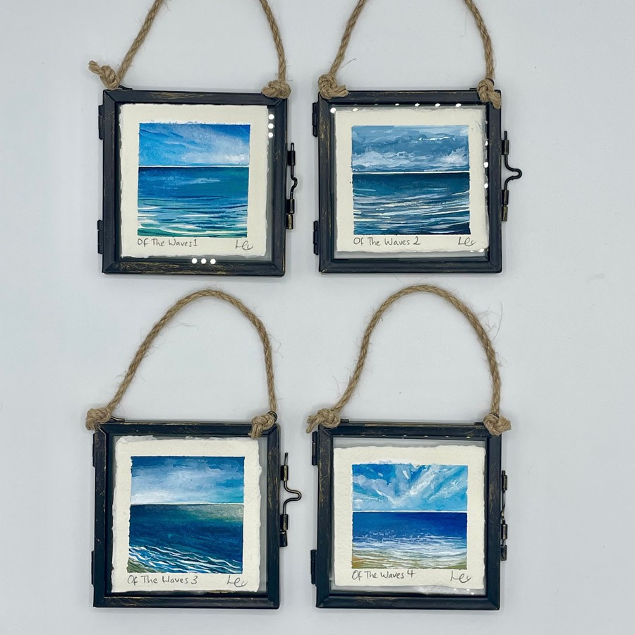 The sky over the sea holds a magic that makes anything seem achievable. My 'Coastal Miniatures' series reflects the dreamlike quality of clouds and sky merging at the horizon, embodying the possibilities that stretch beyond view. Painted on handmade cotton khadi rag paper with natural deckled edges, these works are beautifully framed in hanging metal frames.