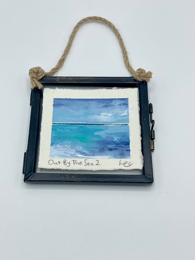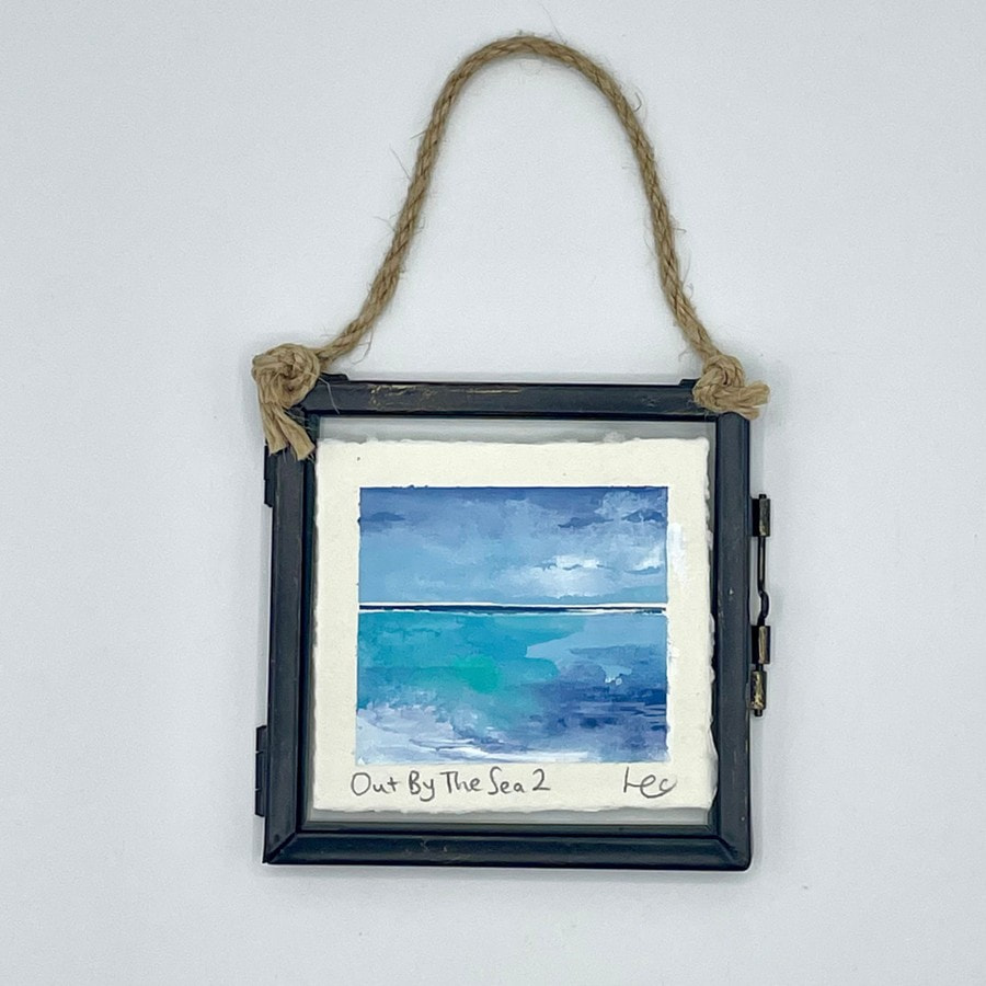 The horizon, where the sky meets the sea, has always stirred a sense of infinite possibility. My 'Coastal Miniatures' series draws attention to the interplay of clouds and open skies, inviting viewers to dream beyond the present. Painted on handmade cotton khadi rag paper with a deckled edge, these seascapes are suspended in sleek hanging metal frames.