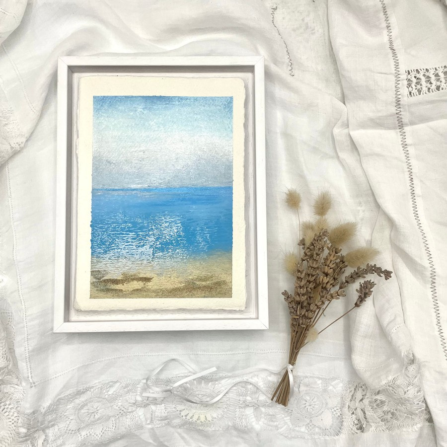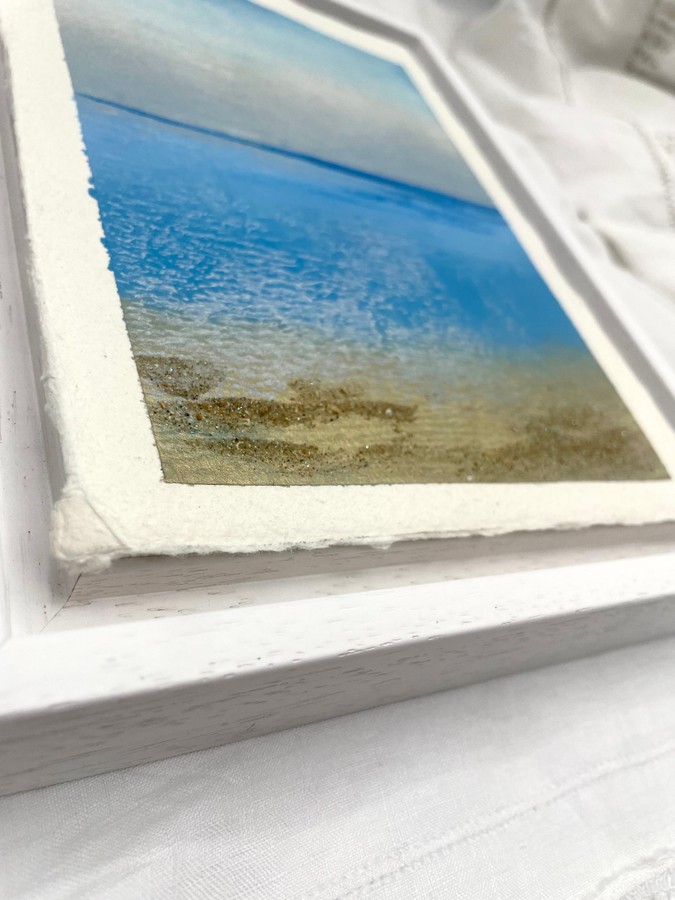 The Sea Sketch - Light Blue collection - is a tribute to the beauty of nature, inviting viewers to bask in the sun's warmth and savor the refreshing ocean breeze on their skin. Emphasising the organic essence of the artwork, the khadi paper harmonizes seamlessly with the beach-inspired theme.