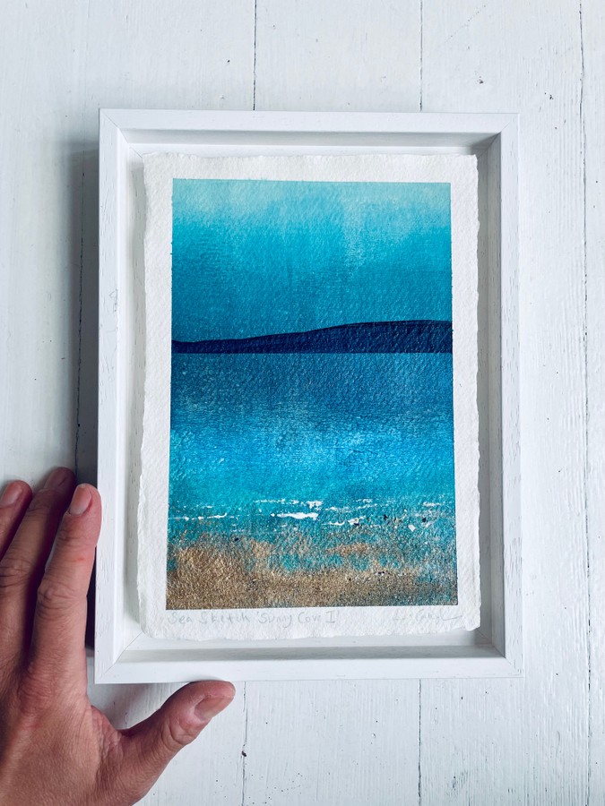 This Sea Sketch - Sunny Cove collection - is a celebration of nature and all its wonders. It invites the viewer to escape into a world of sun, sand, and sea, where worries are left behind and the only thing that matters is the present moment.
