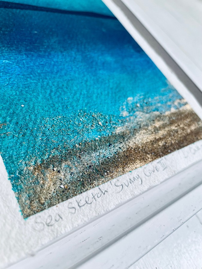 This Sea Sketch - Sunny Cove collection - is a celebration of nature and all its wonders. It invites the viewer to escape into a world of sun, sand, and sea, where worries are left behind and the only thing that matters is the present moment.