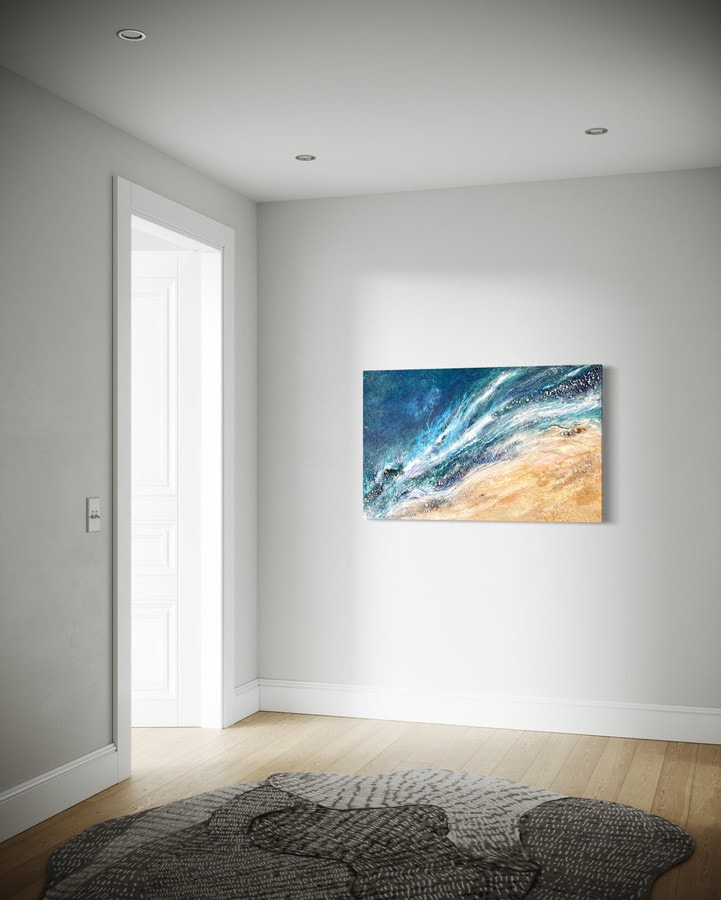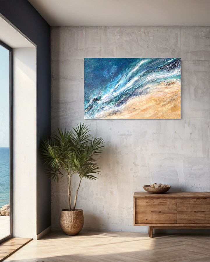 This painting draws inspiration from the groundbreaking imagery emerging from NASA’s new PACE satellite, which can observe global ocean biology and health from space. This painting captures an impression of the vibrant blooms of phytoplankton, tiny marine creatures crucial to ocean and climate health.
