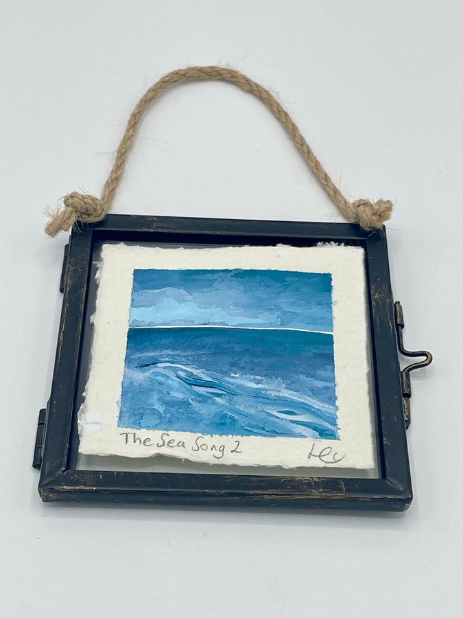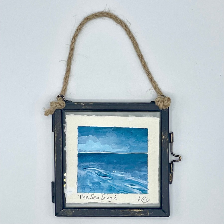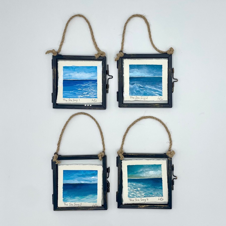 The vast expanse of sky meeting the sea evokes a sense of infinite potential. My 'Coastal Miniatures' collection delves into the subtle shifts in light and atmosphere, capturing the interplay between clouds and the boundless horizon. These seascapes are painted on handmade cotton khadi rag paper, with their deckled edges framed in sleek hanging metal frames.