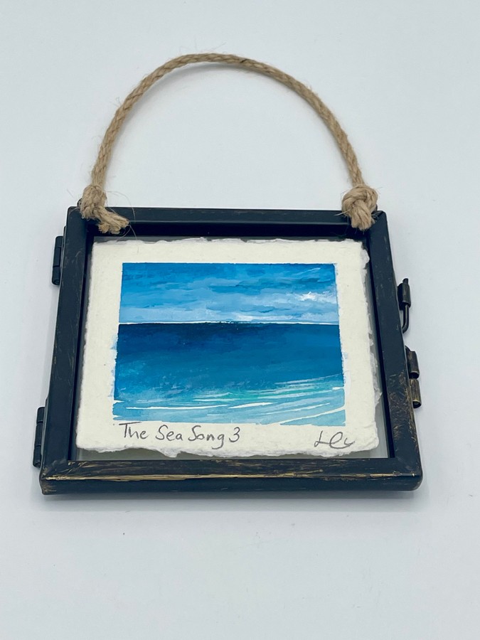 Gazing at the horizon where sea meets sky stirs a feeling of boundless opportunity. In the 'Coastal Miniatures' collection, I focus on the delicate dance of clouds and atmosphere, representing the endless possibilities of what lies ahead. Each piece is crafted on handmade cotton khadi rag paper, framed with care in a suspended metal frame.