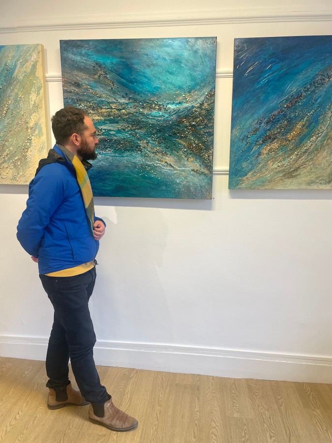 ‘Water’s Littoral’ is a response to the photography. It invites the viewer to witness the force and strength of our life-sustaining waters in spite of man-made abuses. Mother Earth fighting her good fight against the odds and in spite of her ongoing abuse. Water, sea and ocean as a metaphor for majestic feminine power, with sea water from local shores used as an elemental and fundamental connection to our life-giving waters. It is a protest against ecological destruction, by embracing the ecofeminist energy of Mother Nature’s spirit, recognising nature as having agency and resilience.